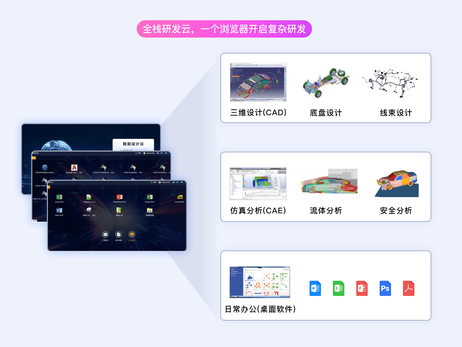 2、研发资源弹性灵活,降本增效:利用云计算模式,甩掉笨重的高性能工作站,实现资源的动态按需分配。这不仅支持移动式研发,更能实现弹性扩容,快速响应计算需求,最大化软硬件资源使用效率,有效降低固定资产投入和重复采购风险。